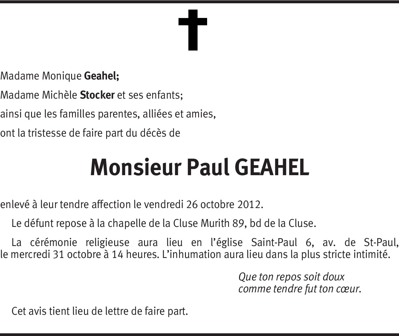 C'est avec beaucoup de peine que j'ai appris le décès de Paul.