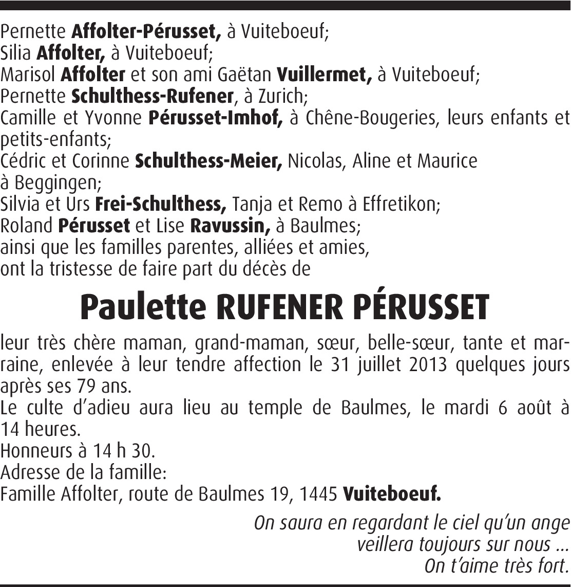 Il y a plus de 4 ans Signaler Pernette, C'est avec une grande tristesse que j'apprends le décès de ta maman. Je te présente toute ma sympathie. Amitiés. Béatrice De la part de Béatrice Gmünder-Dubuis