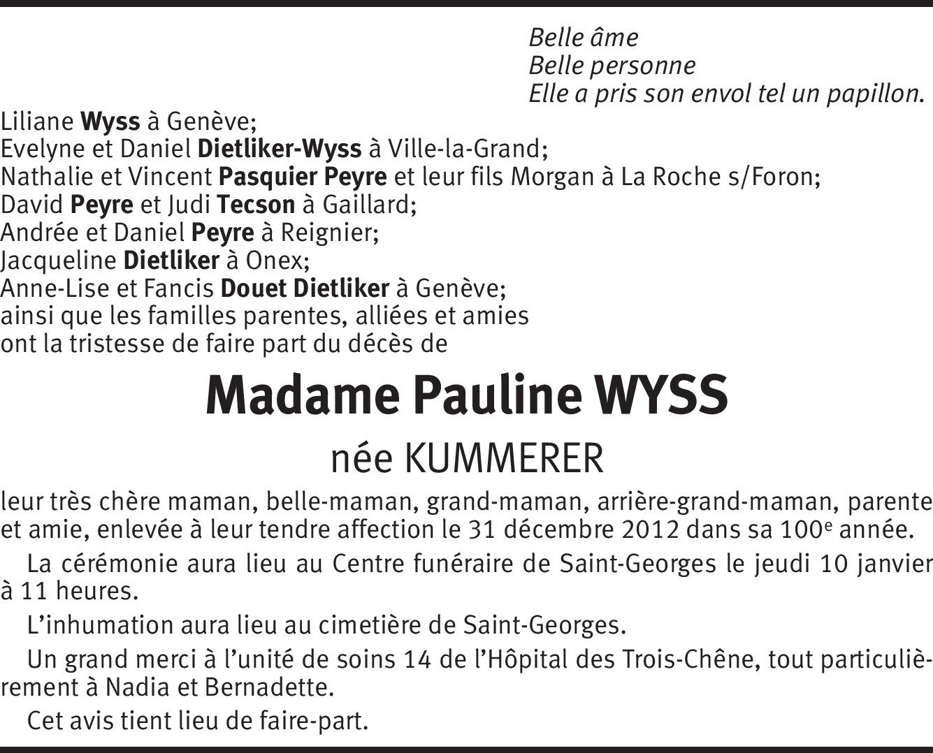 Sincères condoléances.