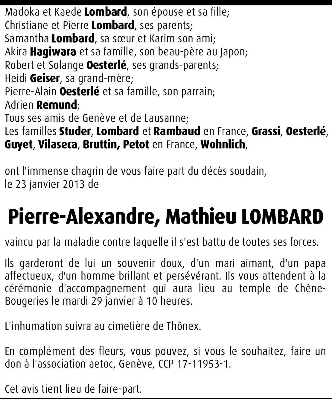 Tout d'abord, je tiens à présenter mes plus sincères condoléances à la famille. J'écris ces quelques mots en souvenir d'un très bon copain d'école primaire avec lequel j'ai d'extraordinaires souvenirs de rigolades et de nombreux bons moments. N'ayant malheureusement pas vu les avis, je n'ai pas pu assister à la cérémonie mais toutes mes pensées vont vers vous en ces temps douloureux. Je souhaite que votre ciel assombri par ce deuil s'éclaircisse à nouveau grâce aux bons souvenirs que nous gardons tous de Pierre-Alexandre.