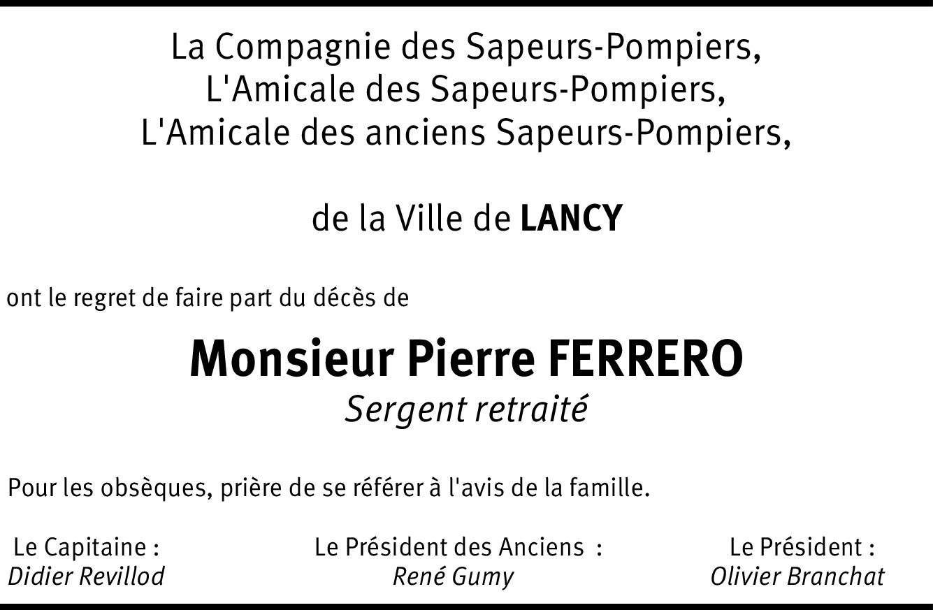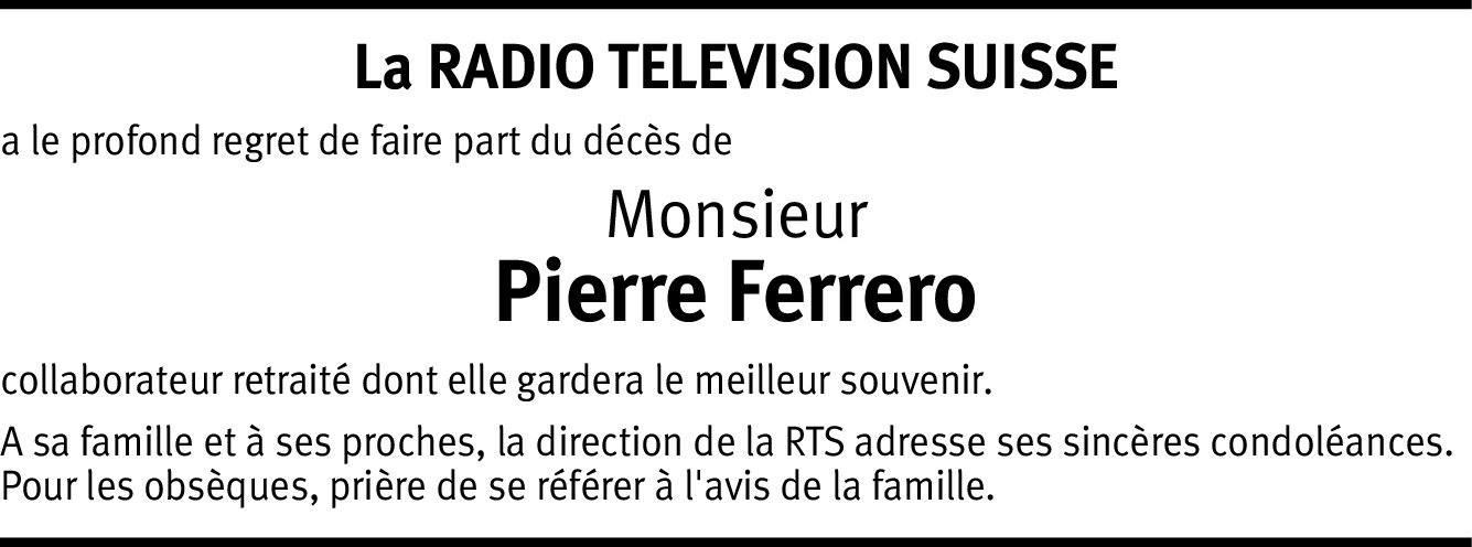Mon ami, mon très cher ami Pierre, j'apprends seulement aujourd'hui le 17 avril 2013 ton départ, et suis également doublement triste de ne pas avoir pu aller te dire au revoir. Je me souviens de nos belles escapades, il y a environ 53 ou 54 ans, si ma mémoire est bonne, à l'époque, tes parents habitaient au Bout-du-Monde et tu travaillais pour les Si, si ma mémoire ne me fait pas défaut. Ensuite nous sommes perdus de vue, pendant quelques années, et nous sommes revus alors que tu travaillais à la TV suisse romande, Et ensuite reperdus de vue, jusqu'au tout début des années 2000 ayant été victime d'un accident, je t'ai retrouvé en physiothérapie dans une piscine de centre de Cressy. J'adresse mes plus sincères condoléances à tes enfants et toute ta famille. Que Dieu t'accueille en son Paradis. Ce n'est qu'un au revoir.