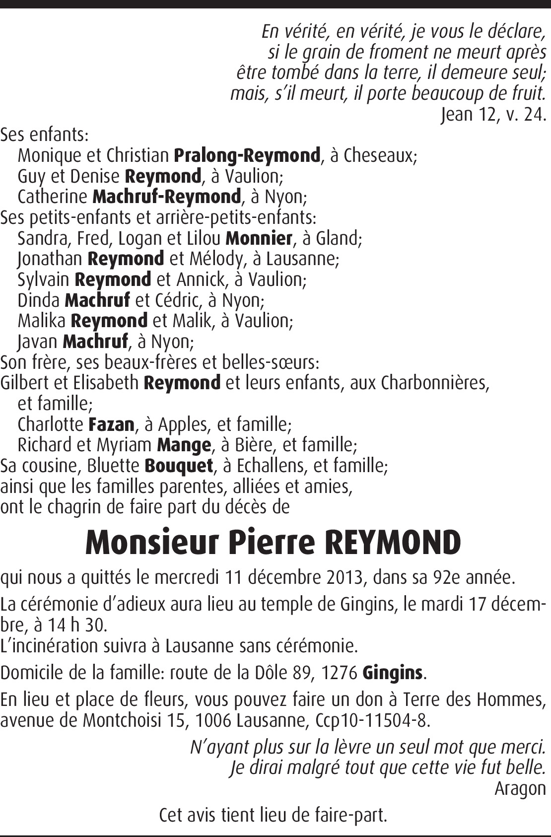 Dernière condoléances