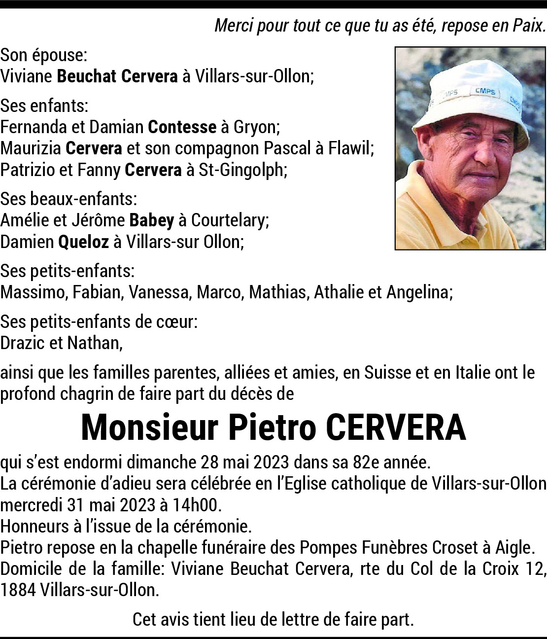 30.05.2023 Signaler Le Nostre più sentite condoglianze Fam. Valter Pistor Valvasone, 30 maggio 2023 De la part de Pistor