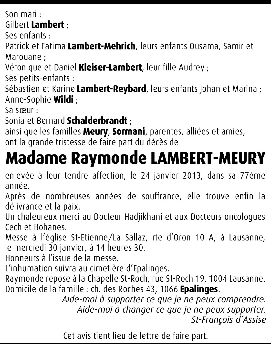 Vous souhaitez rester informé des nouveaux avis et condoléances pour ce défunt ?