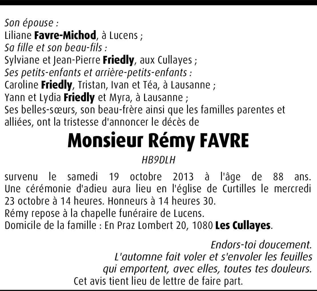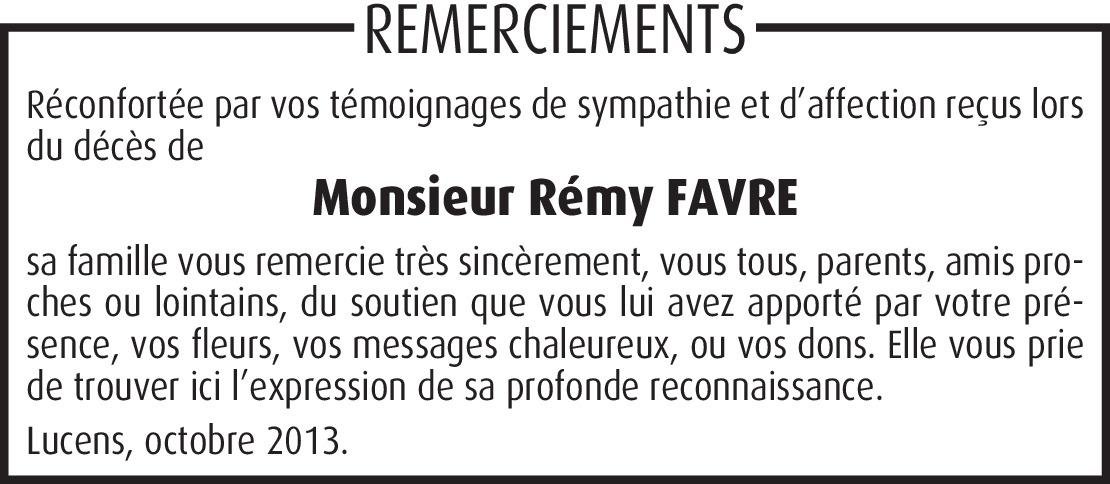 Chère Famille, C'est avec tristesse que nous avons appris la nouvelle. Nous sommes en pensées avec vous et nous vous présentons nos sincères condoléances.