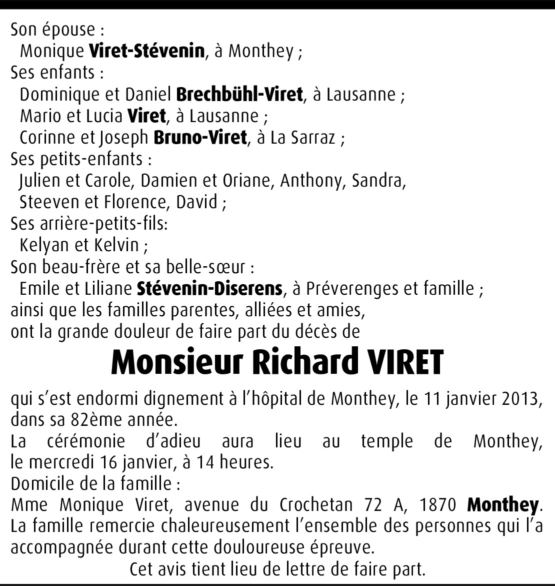 Il y a plus de 4 ans Signaler Dominique, Je te présente mes sincères condoléances pour le décès de ton papa. De la part de Christine Gendre