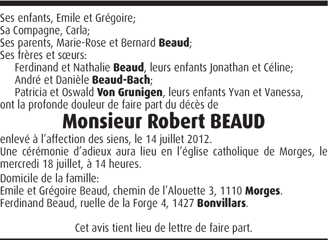 Cher Ferdinand et famille, dans ces tristes moments de séparation nous sommes de tout coeur avec vous. Recevez toute notre sympathie