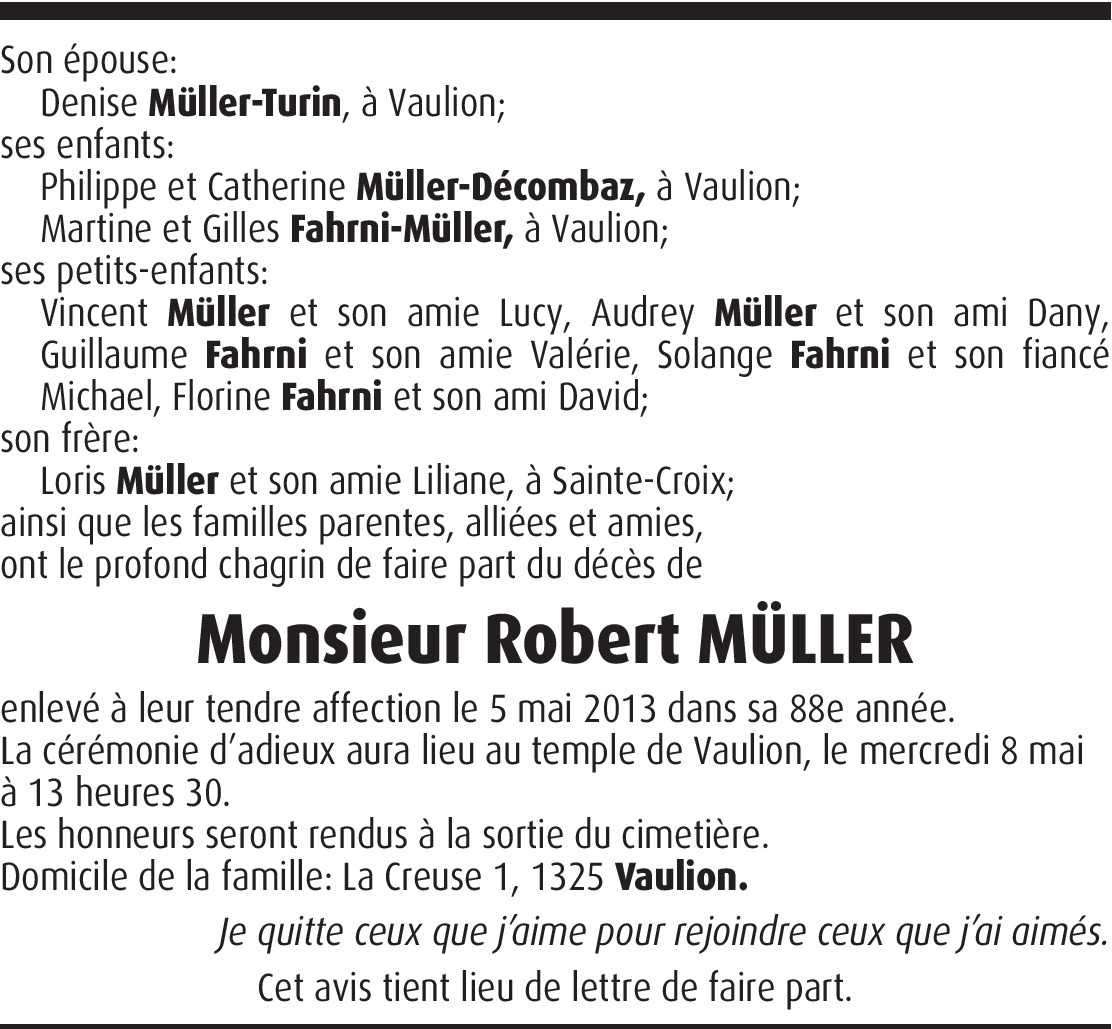 Vous souhaitez rester informé des nouveaux avis et condoléances pour ce défunt ?
