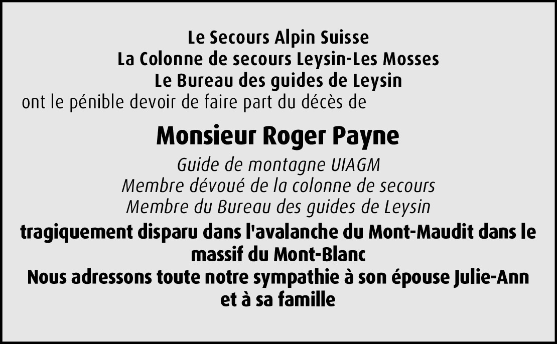 Dear Julie-Ann, I am so sorry about this tragedy on Mt. Maudit. Once more a dear friend and guide paid for all of us. Roger was really a strong buttress on our meetings and for our profession. He will live and climb on in our heart. Sincere condolences Armin Oehrli, secretary IFMGA