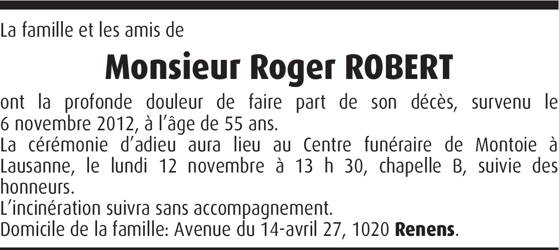 Il y a plus de 4 ans Signaler Roger, un ami, un homme de valeur nous quitte trop tôt. Repose en paix. De la part de Fabienne Guinnard