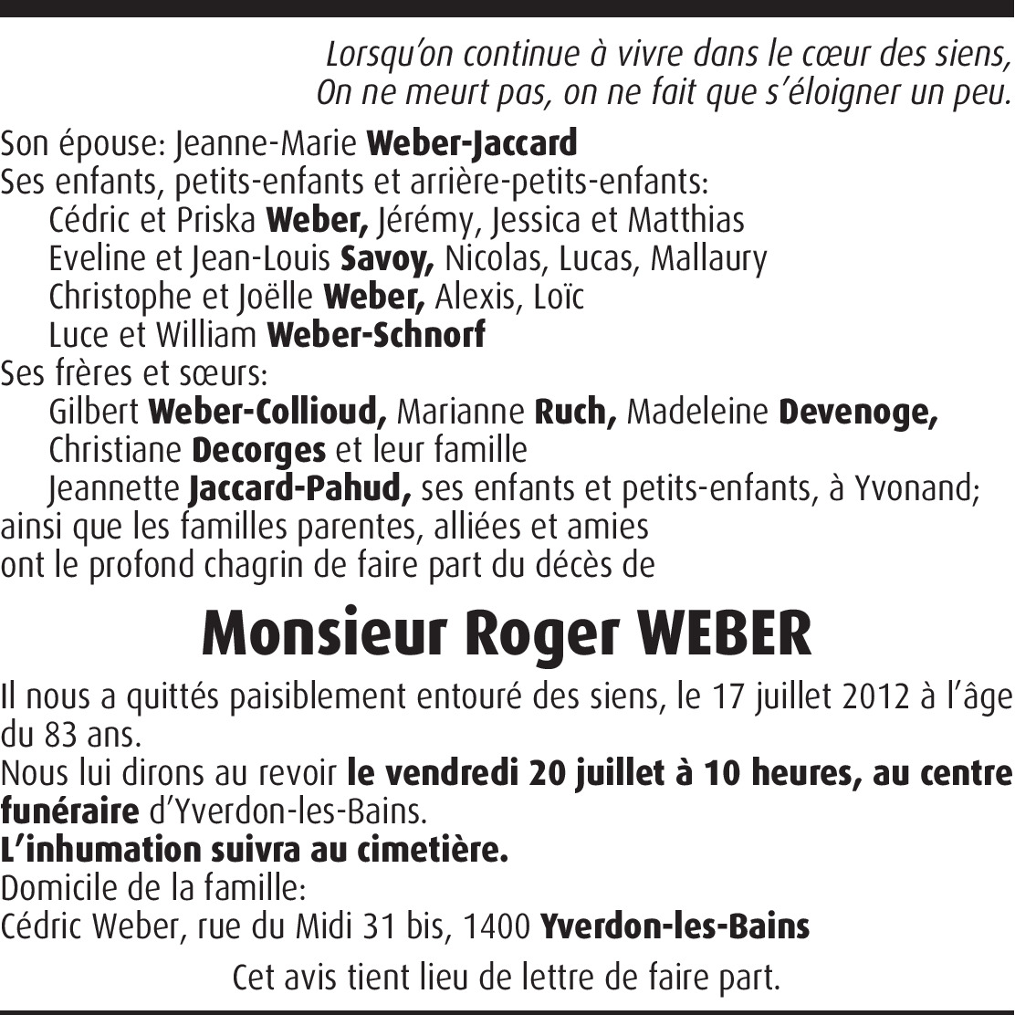 Vous souhaitez rester informé des nouveaux avis et condoléances pour ce défunt ?