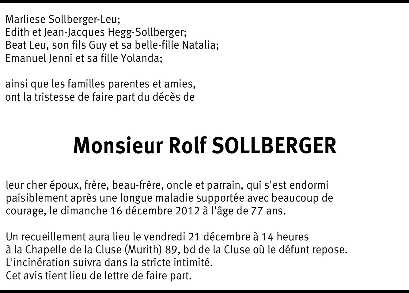 Vous souhaitez rester informé des nouveaux avis et condoléances pour ce défunt ?