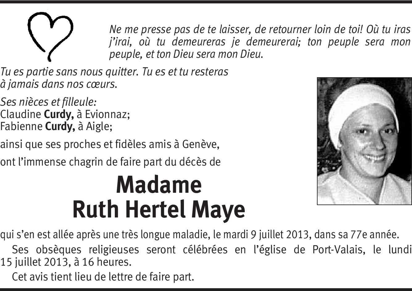 Toutes nos pensées vers vous sont tournées pour vous apporter un peu de réconfort dans l'épreuve que vous vivez. Sachez que dans le deuil vous n'êtes pas seuls puisque vous pouvez compter sur notre sincère amitié. Veuillez accepter nos plus sincères condoléances.