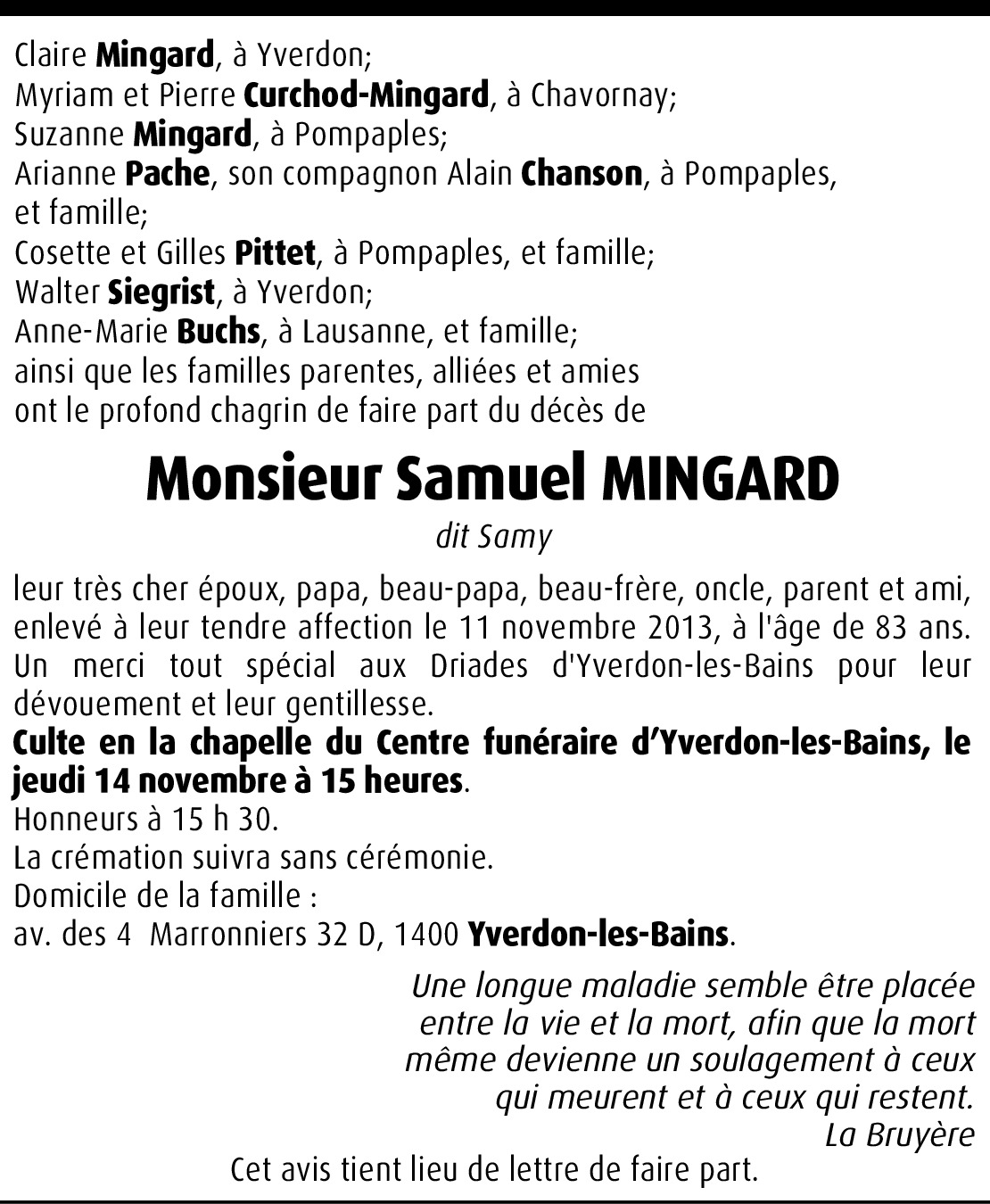 Vous souhaitez rester informé des nouveaux avis et condoléances pour ce défunt ?