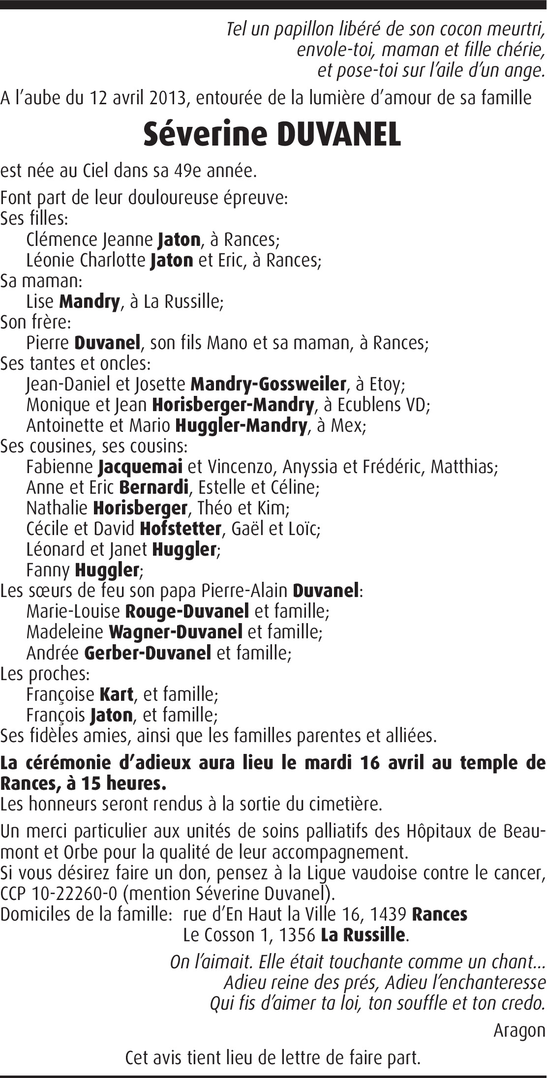 Pour Clémence et Léonie... de tout coeur avec vous dans cette terrible épreuve que vous inflige la vie en vous enlevant votre si jeune maman... vous envoie toute ma sympathie...