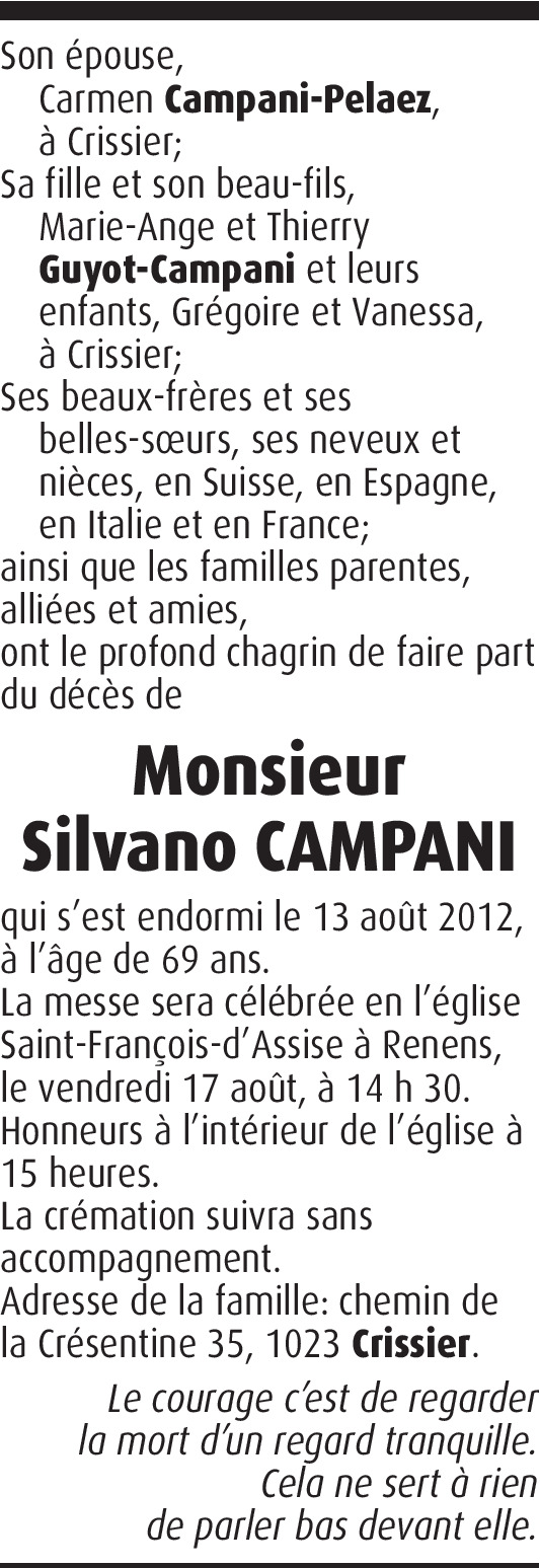 Il y a plus de 4 ans Signaler A mon ami Silavno qui restera toujours parmi nous. Toutes mes condoléances à toute la famille et une pensée pour son épouse Carmen. Famille Elmaleh Albert De la part de Albert Elmaleh
