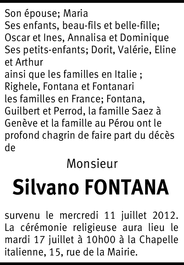 Il y a plus de 4 ans Signaler C'est avec grande tristesse que nous apprenons le décès de Silvano. Nous sommes de tout coeur avec vous et vous présentons nos sincères condoléances. Avec toute notre amitié - Famille Rodriguez De la part de Pierre Rodriguez