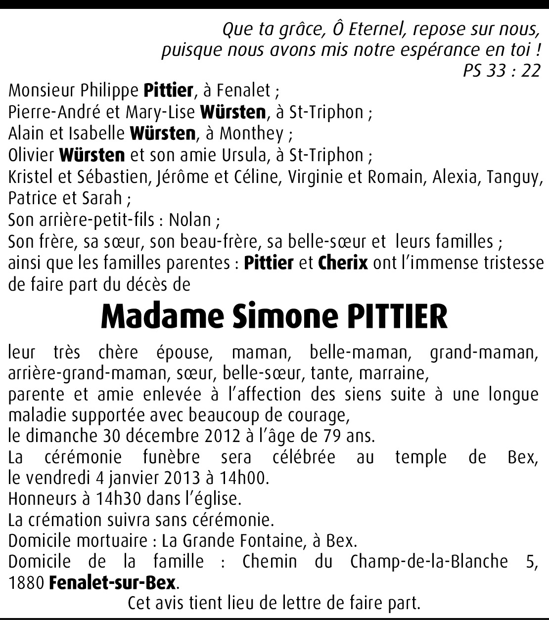Vous souhaitez rester informé des nouveaux avis et condoléances pour ce défunt ?
