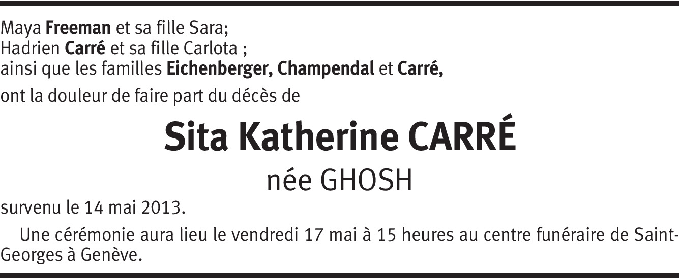 C'est avec beaucoup de peine que j'apprends le décès de votre chère maman. Je la connaissais depuis longtemps. Je ne pourrais être parmi vous vendredi. J'habite maintenant le Tessin à Mendrisio, mais croyez que toutes mes pensées seront vers vous. Recevez mes sincères condoléances. Marcelle Lilla.
