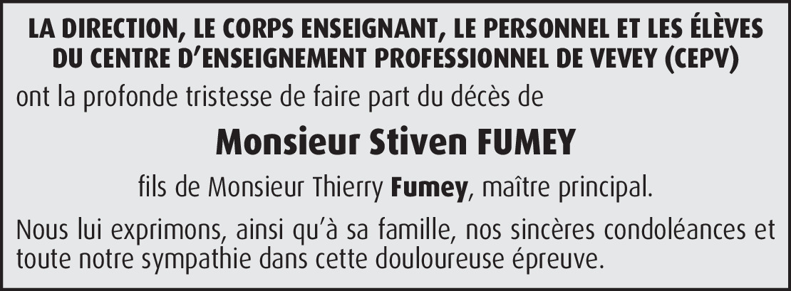 Nous venons d'apprendre le décès de votre fils Stiven. Par ces quelques lignes, nous tenons à nous associer à votre douleur et à vous témoigner toute notre sympathie.