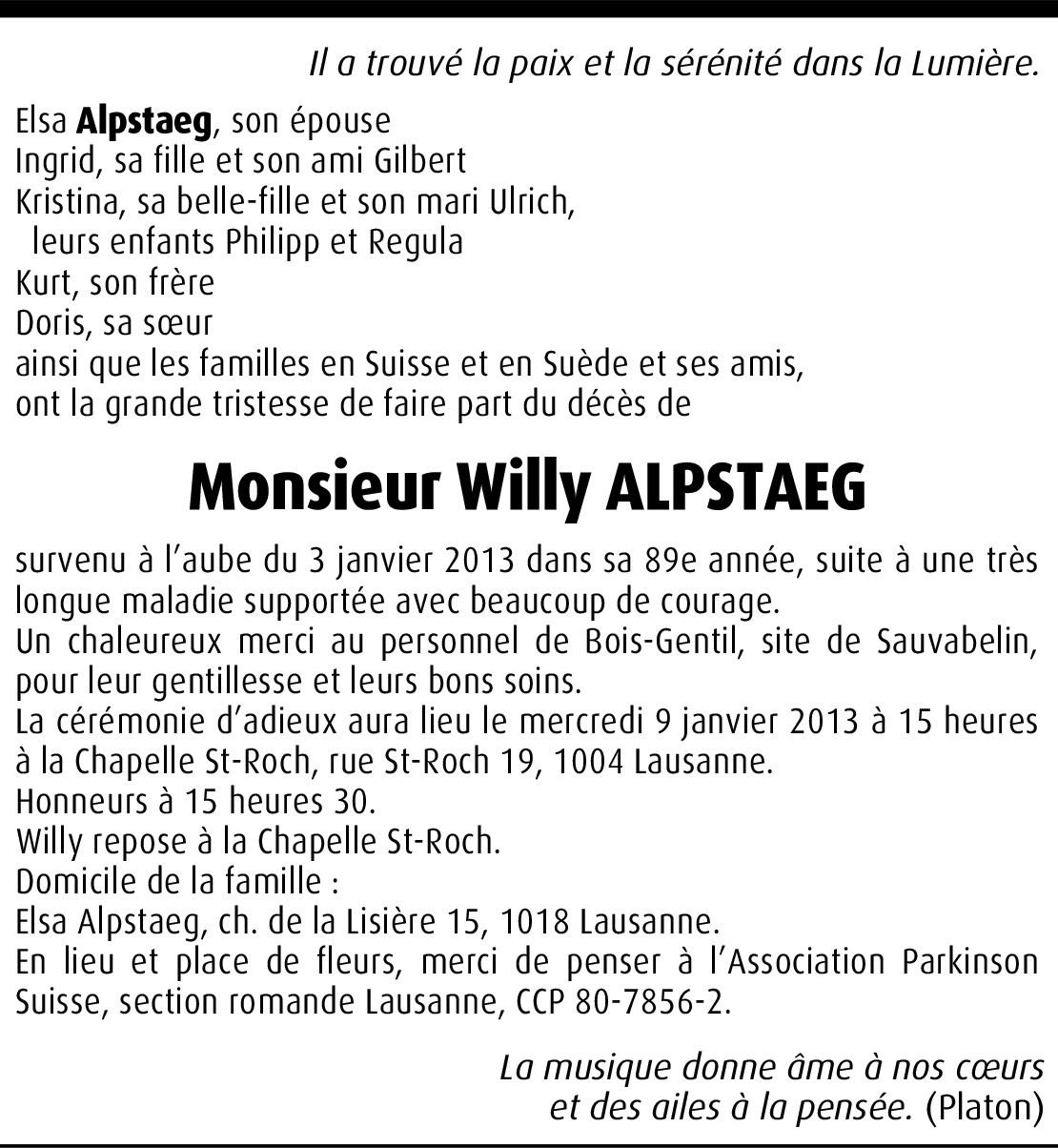 Vous souhaitez rester informé des nouveaux avis et condoléances pour ce défunt ?