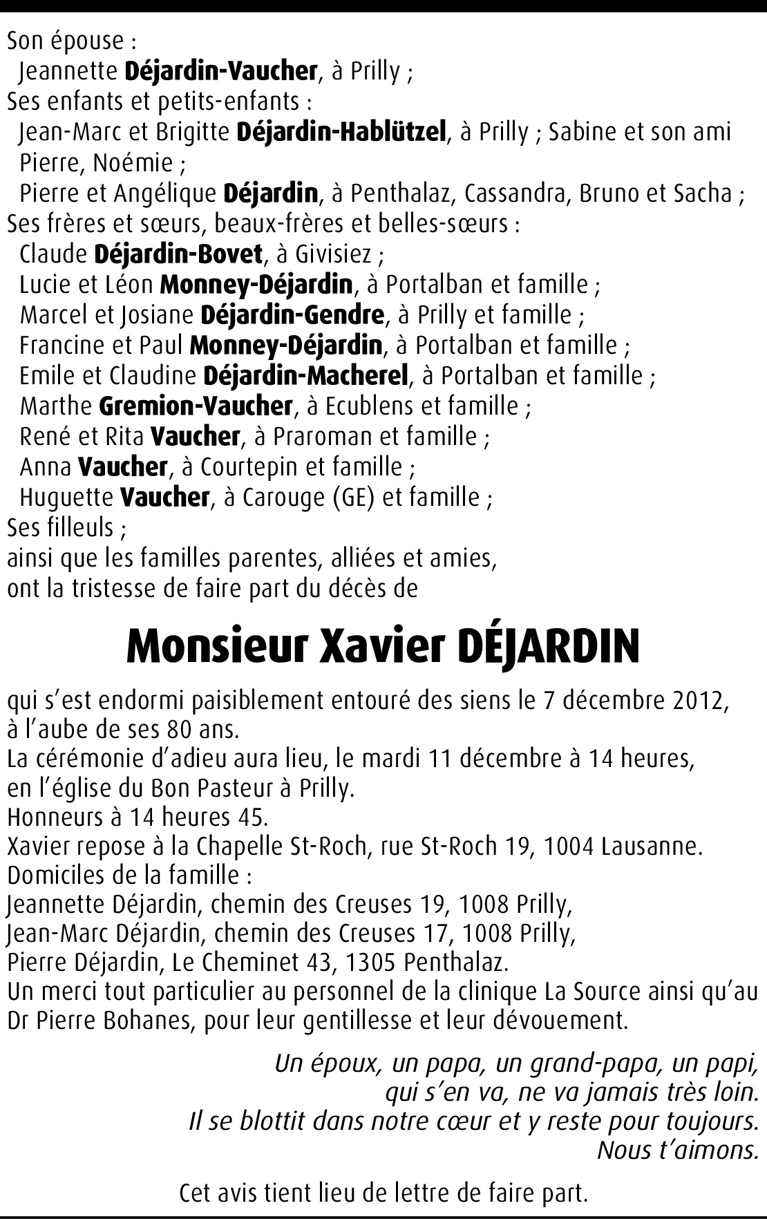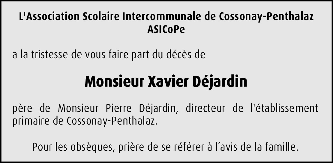 Nous vous adressons, chère famille, Sabine et Noémie, nos sincères condoléances. Toutes nos pensées sont avec vous dans ces moments de peine et de douleur. Famille Véronique Sciboz-Job, Cheseaux