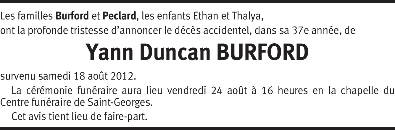 Il y a plus de 4 ans Signaler Yann, papa d'Evan, toujours fidèle à toi- même, il est temps maintenant pour toi de continuer ton chemin vers d autres horizons. Tu seras toujours dans nos pensées. Evan, Anthony, Felicia De la part de Feliciana Oreste