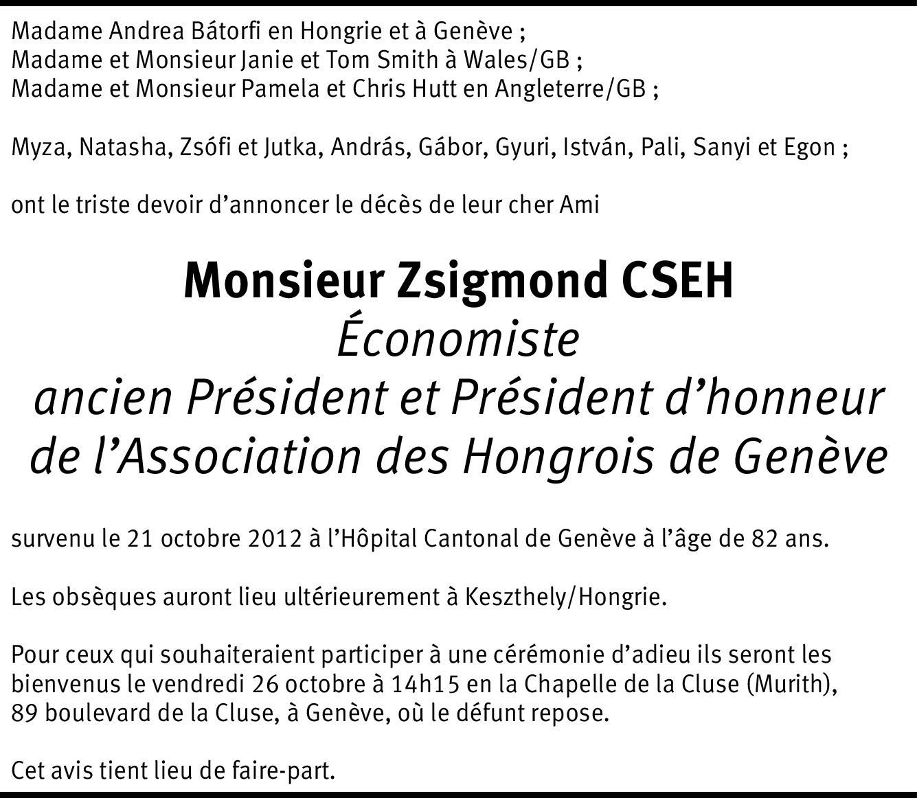 Il y a plus de 4 ans Signaler Je présente à la famille mes plus sincères condoléances pour la disparation de notre ami SIGI. Qu'il repose en paix et qu'il jouisse de la paix et de la sérénité pour l éternité auprès de notre Père Éternel. De la part de Ihab Osman