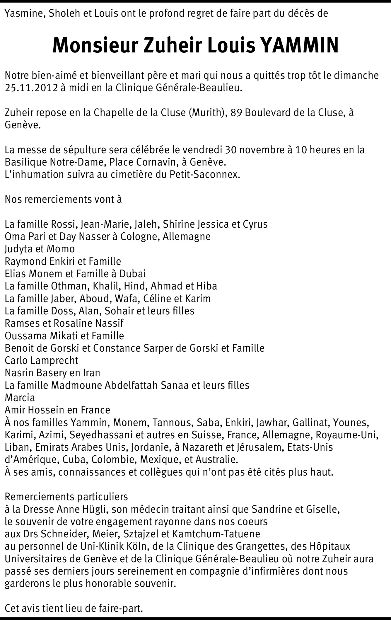 Dear Sholeh - perhaps you won't remember me but I remember you and your wonderful hospitality when I lived in Geneva almost 30 years ago. Zuheir was a wonderful man, full of life and fun and working with him at UNDP really opened my eyes to the world. He used to bring Louis and Yasmin into the office too, which was fun!